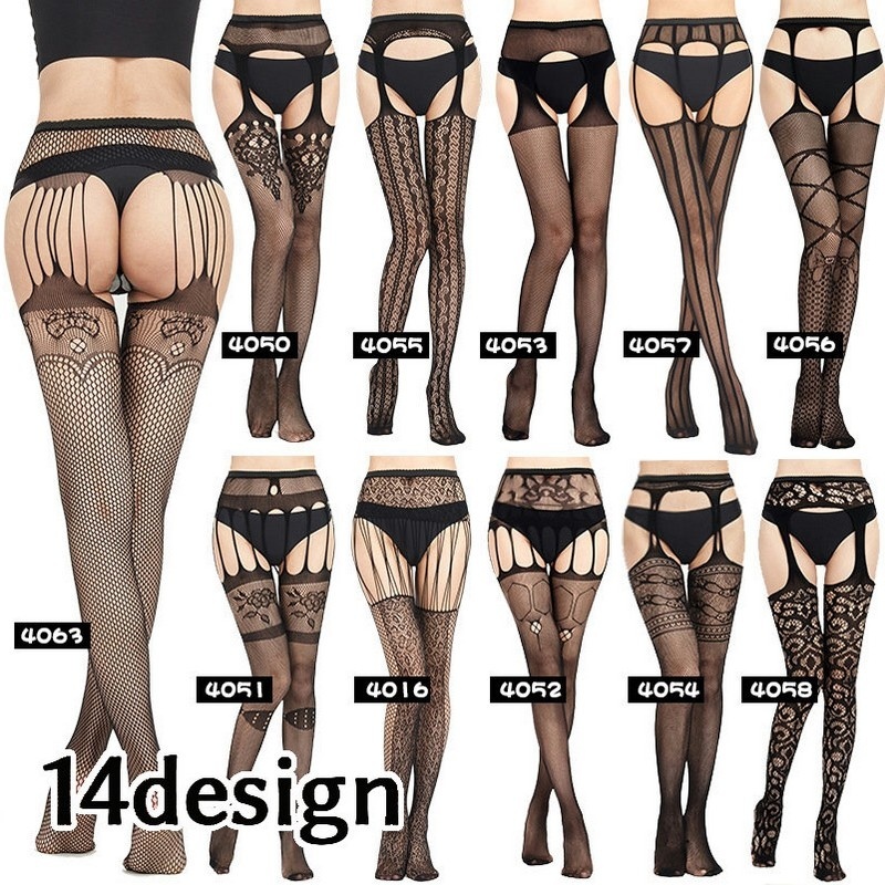ガーターストッキング ガーターベルト一体型 編みタイツ 柄タイツ ネット メッシュ レディース 婦人用 女性 ニーハイ 透け感 ランジェリー おしゃれ