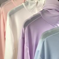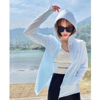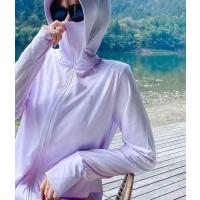ツバ付きのフード&首まわりをすっぽり覆うハイネックデザインで、紫外線対策にぴったり☆