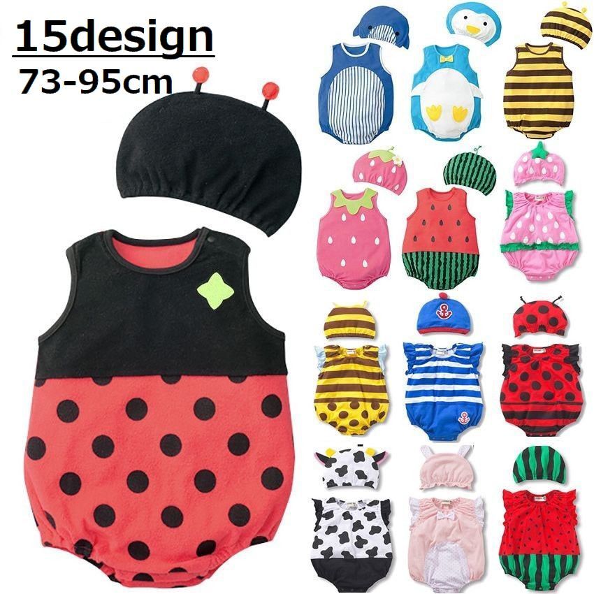 ベビー服 女の子 男の子 ロンパース カバーオール ボディースーツ ノースリーブ 帽子付き 2点セット ラウンドネック ベビー用 ボディスーツ コスプ