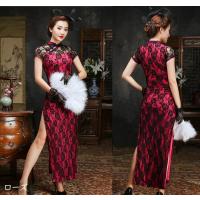 チャイナドレス ロング丈 サイドスリット 半袖 レディース 女性 婦人 タイトワンピース 大きいサイズ ゆったり コスプレ シースルー レース 透け感