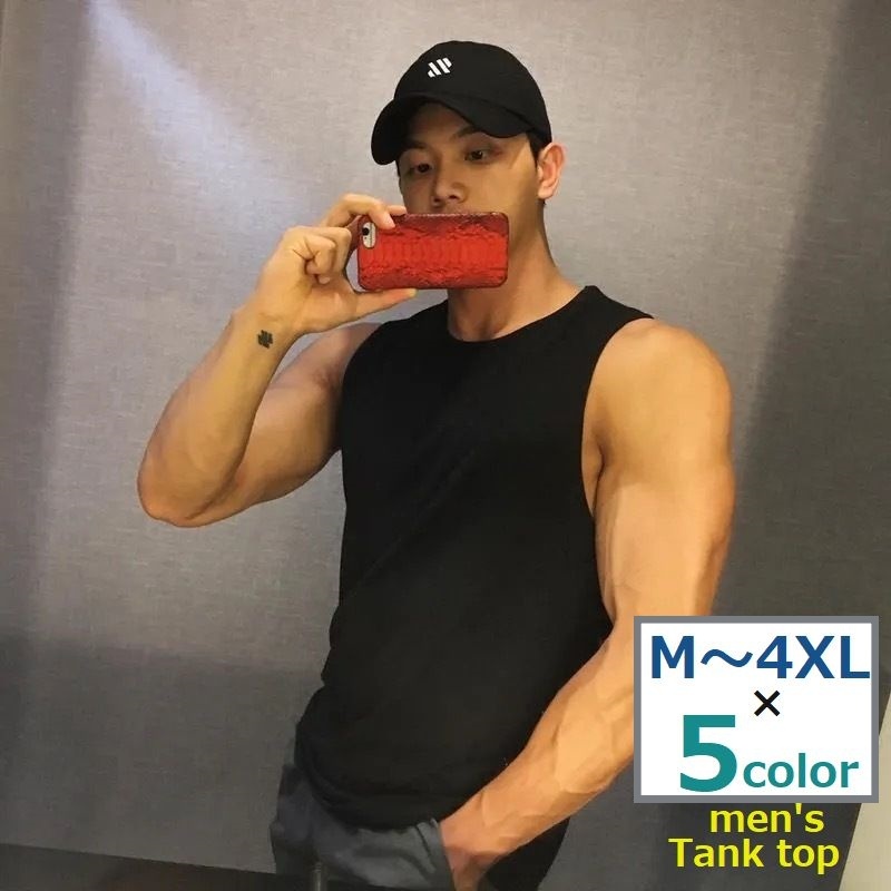 タンクトップ 大きいサイズ メンズ トップス ノースリーブ 袖なし Uネック ラウンドネック メッシュ 通気性 シンプル カジュアル 無地 トレーニン