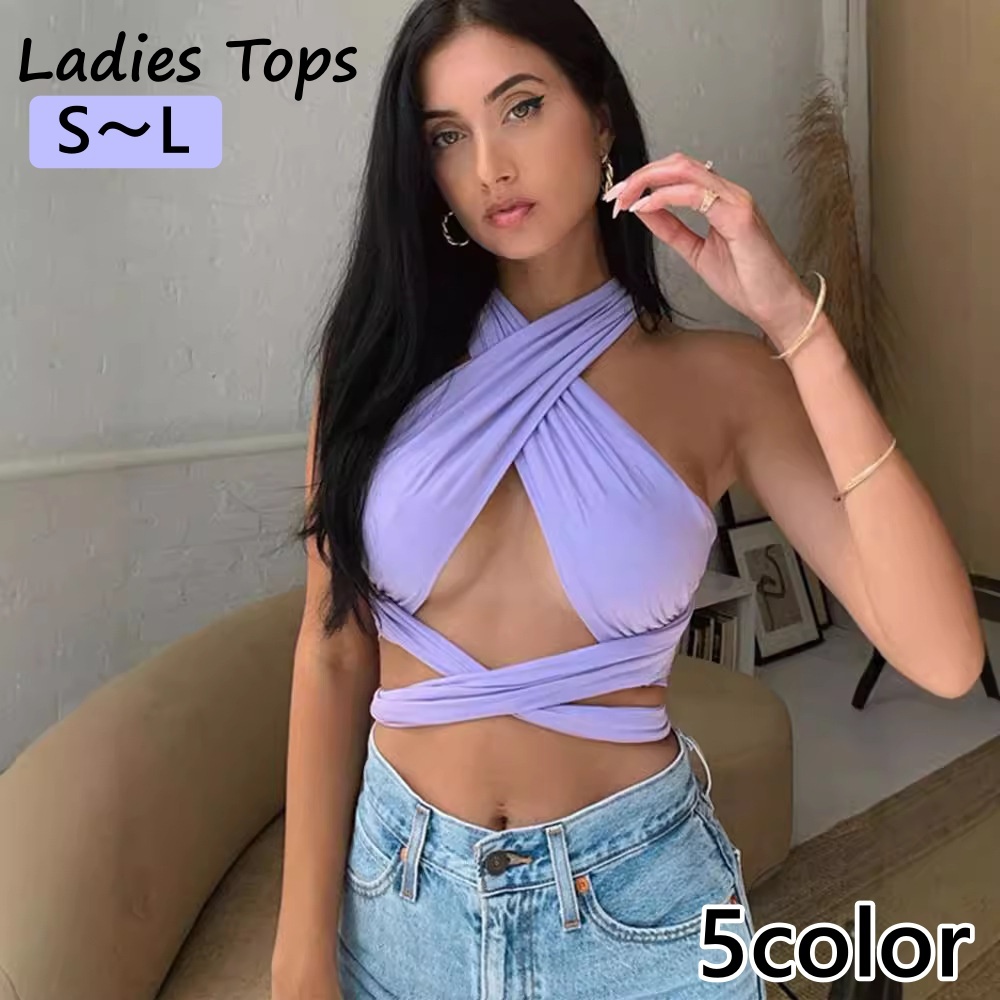 ベアトップ レディース トップス ホルターネック チューブトップ タンクトップ ノースリーブ クロス 肌見せ セクシー おしゃれ 黒 白