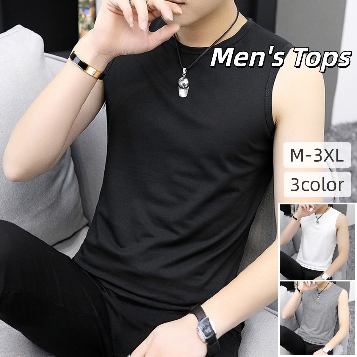 タンクトップ メンズ トップス ラウンドネック プルオーバー 無地 ソリッドカラー シンプル 速乾性 通気性 カジュアル 男性用 大きいサイズあり 定