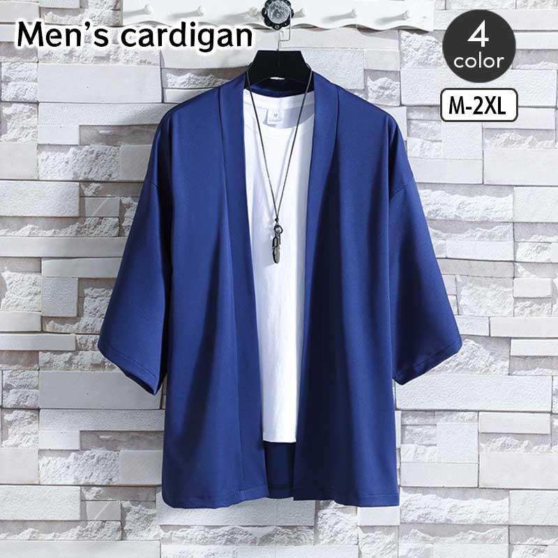 カーディガン メンズ 男性用 羽織り 七分袖 半袖 和風 薄手 大きいサイズ有り 和式カーディガン 中華風 チャイナ風 カジュアル おしゃれ ボタンな