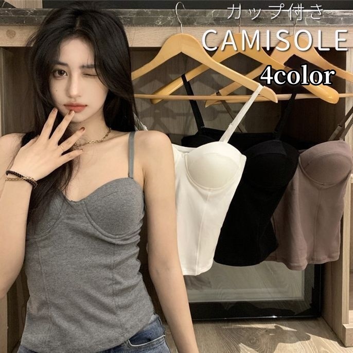 キャミソール カップ付き レディース 女性用 トップス ブラトップ ノースリーブ ビスチェ風 無地 パッド付き シンプル おしゃれ