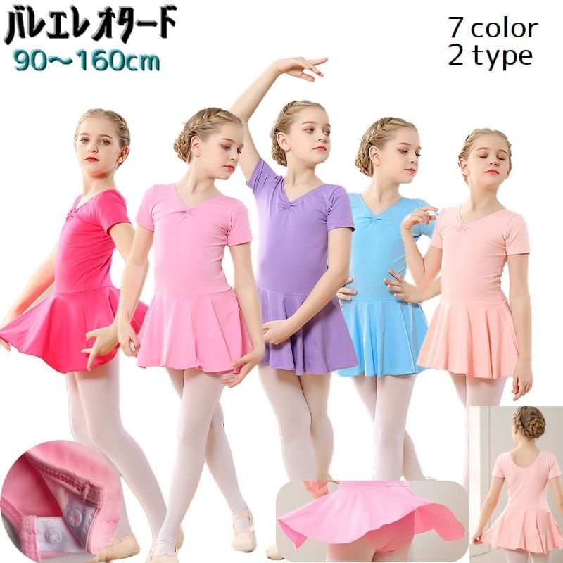 バレエ レオタード スカート付き キッズ ジュニア ベビー Vネック 半袖 長袖 練習 発表会 シンプル 無地 カラバリ豊富