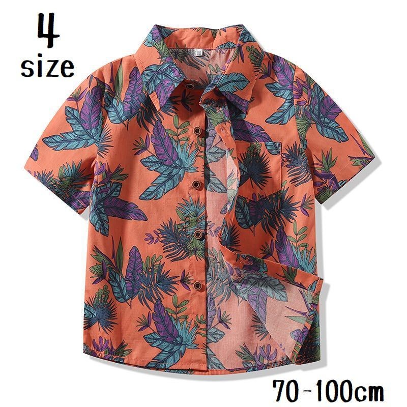 シャツ 半袖 子供服 トップス 前開き スタンダードカラー ボタンフロント 植物 葉っぱ ベビー キッズ 男の子 女の子 夏 海 カジュアル 外出 お