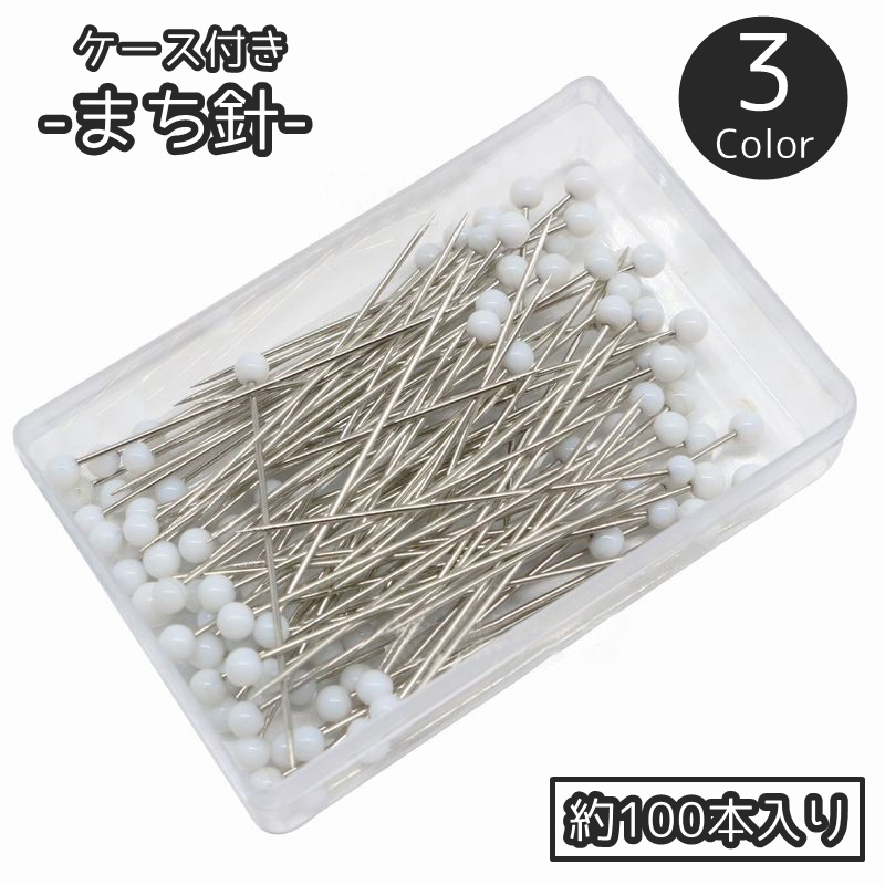 まち針 待ち針 待針 32mm 約100本入り ケース付き 手芸 クラフト 裁縫道具 収納ケース付き ボールヘッドピン パール調 洋裁用 パッチワーク