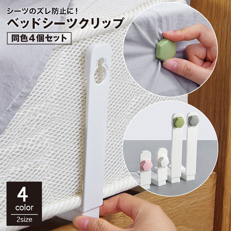 ベッドシーツクリップ 4個セット 固定器具 べットカバー 寝具 マットレス 挟むだけ 留める ずれ落ち防止 ズレ防止 滑り止め シンプル 簡単取り付け