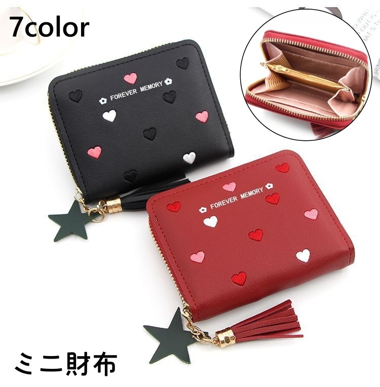 ミニ財布 レディース 財布 ミニウォレット 小さい財布 カードケース カード入れ コンパクト シンプル ハート 星 かわいい おしゃれ ピンク 黒 赤