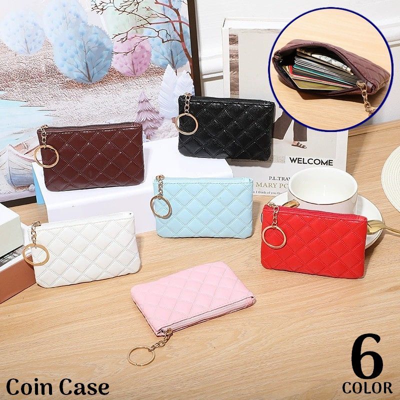 コインケース 小銭入れ レディース キルティングレザー風 ミニ財布 カード収納 コンパクト 薄型 スリム 大容量 キーリング おしゃれ