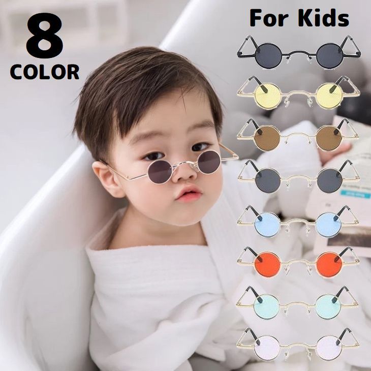 サングラス 伊達メガネ 丸めがね 子供用 キッズ 眼鏡 ラウンド型 色付き 小さめ 度なし カラーレンズ 軽量 UV 紫外線対策