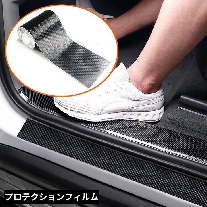 車用プロテクションフィルム 10cm 3m カー用品 カーボン調スカッフプレートシール サイドステップガード 傷防止テープ 保護