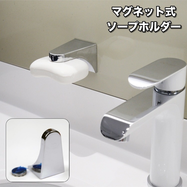 ソープホルダー マグネット式 石鹸ホルダー 石けん せっけん 磁石 壁面 浮かせる 粘着シール バスルーム 浴室 洗面所 シンプル おしゃれ