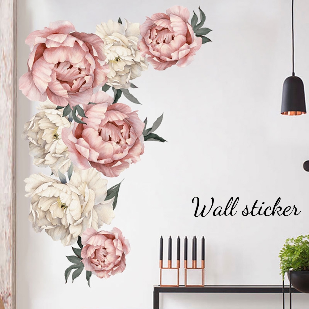 ウォールステッカー ウォールシール 壁用ステッカー ボタン 牡丹 花 フラワー 壁紙シール DIY リビング 寝室 キッチン 模様替え エレガント お
