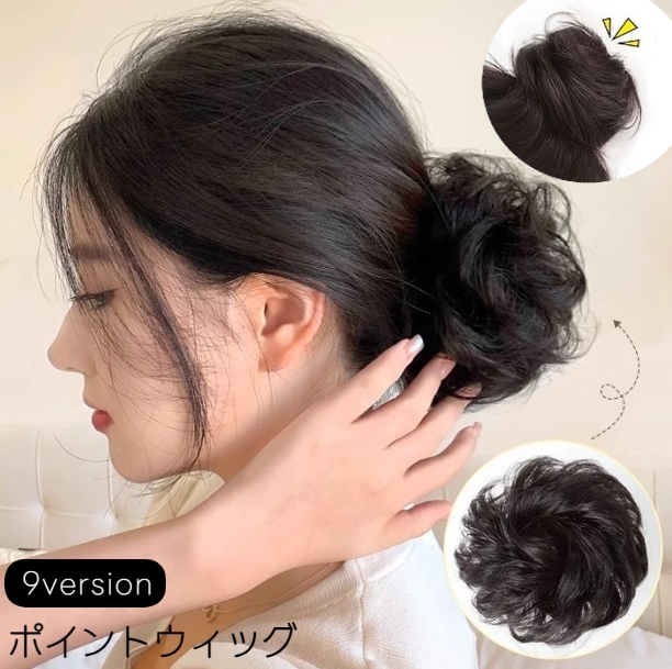 ポイントウィッグ 部分ウィッグ お団子ウィッグ シュシュタイプ レディース 女性 ヘアアクセサリー ふわふわ カール お団子ヘアー つけ毛 ヘアアレン