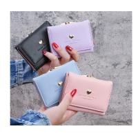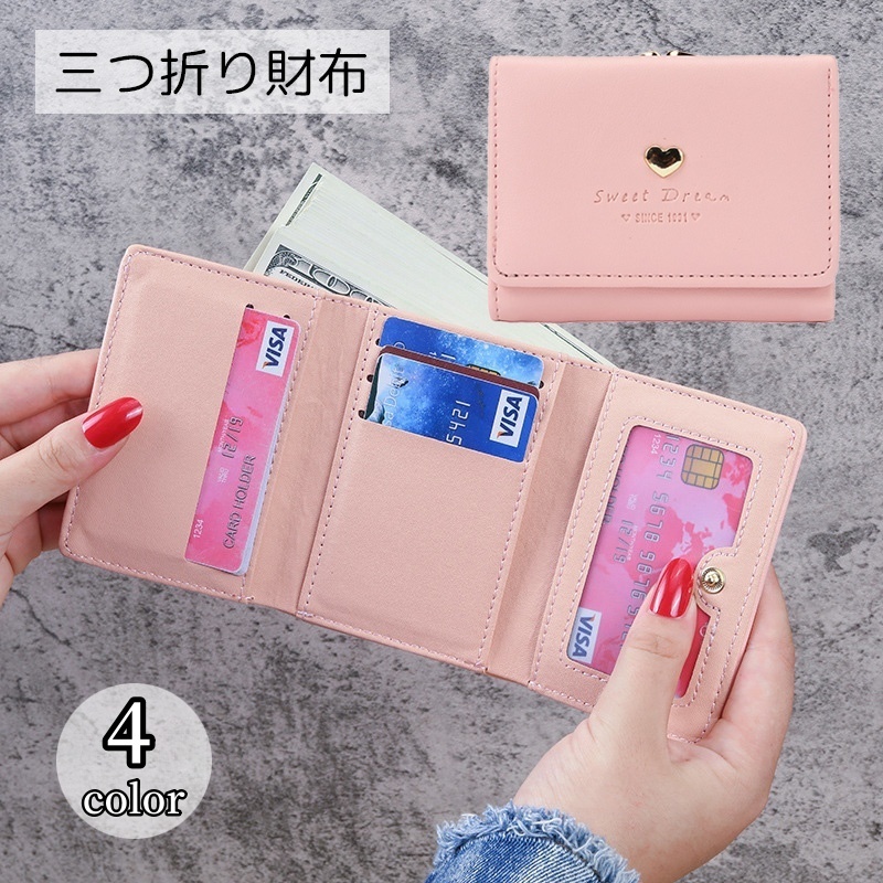 三つ折り財布 レディース 財布 ハート ピンク ブルー ブラック PUレザー コンパクト 大容量 かわいい シンプル