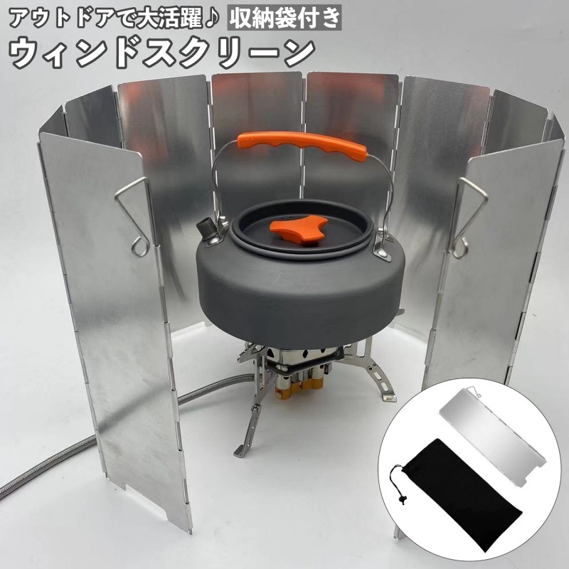 ウィンドスクリーン 風防板 10枚板 収納袋付き 風よけ 風除け 防風 折り畳み コンパクト アウトドア用品 キャンプ 料理 野外調理 クッキング用品
