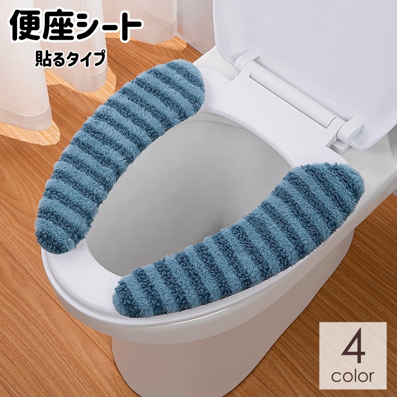 便座シート 便座カバー 貼るタイプ トイレ用品 便座クッション 粘着式 水洗い可能 便利 簡単 衛生的 シンプル ふわふわ ボーダー 青 緑 ベージュ