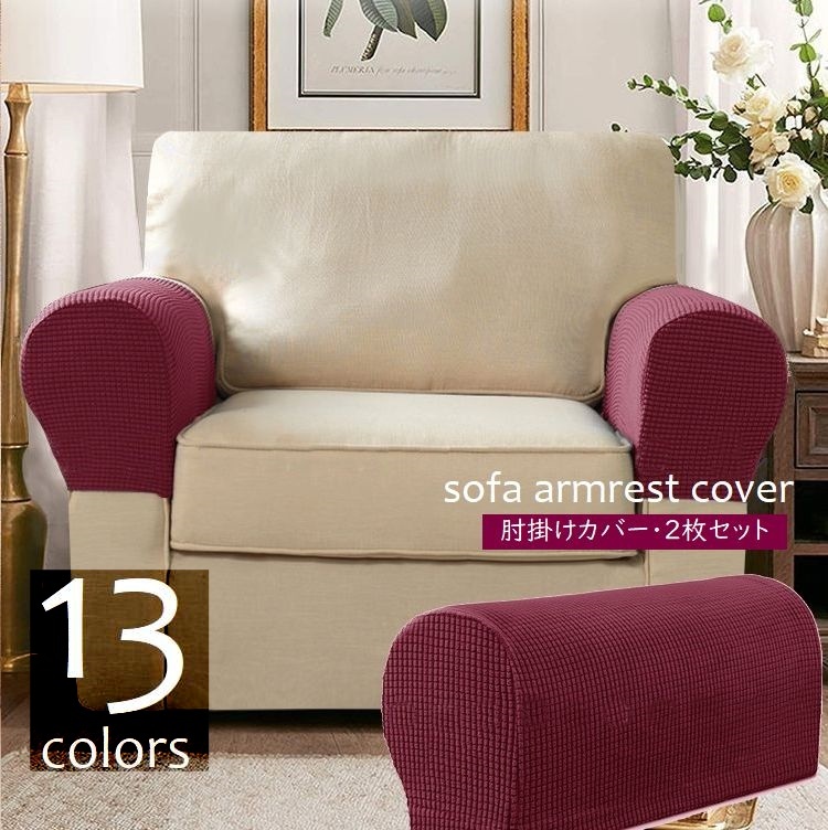 肘掛けカバー ソファ アームレストカバー 2枚セット ワッフル地 ひじ掛け用カバー ストレッチ 無地 伸縮性あり 汚れ対策 擦れ防止