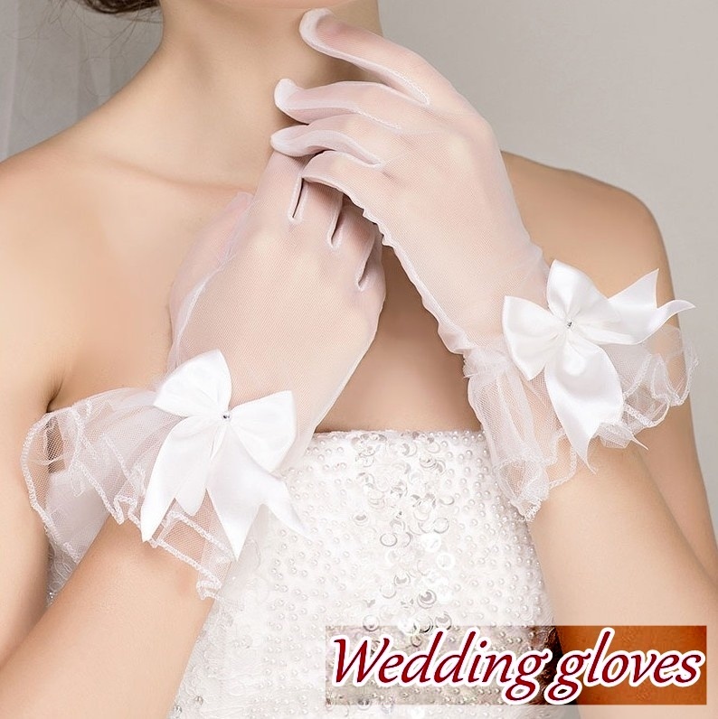 ウエディンググローブ 手袋 レディース 女性 ブライダル用品 ウエディング用品 ファッション雑貨 シースルー 薄手 レース リボン フリル 無地 ホワ