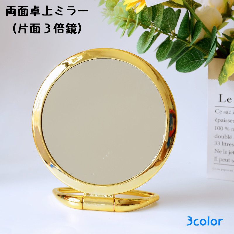 両面卓上ミラー 鏡 3倍鏡 等倍鏡 丸型 化粧鏡 折りたたみミラー スタンドミラー メイクミラー 卓上 持ち運び コンパクト