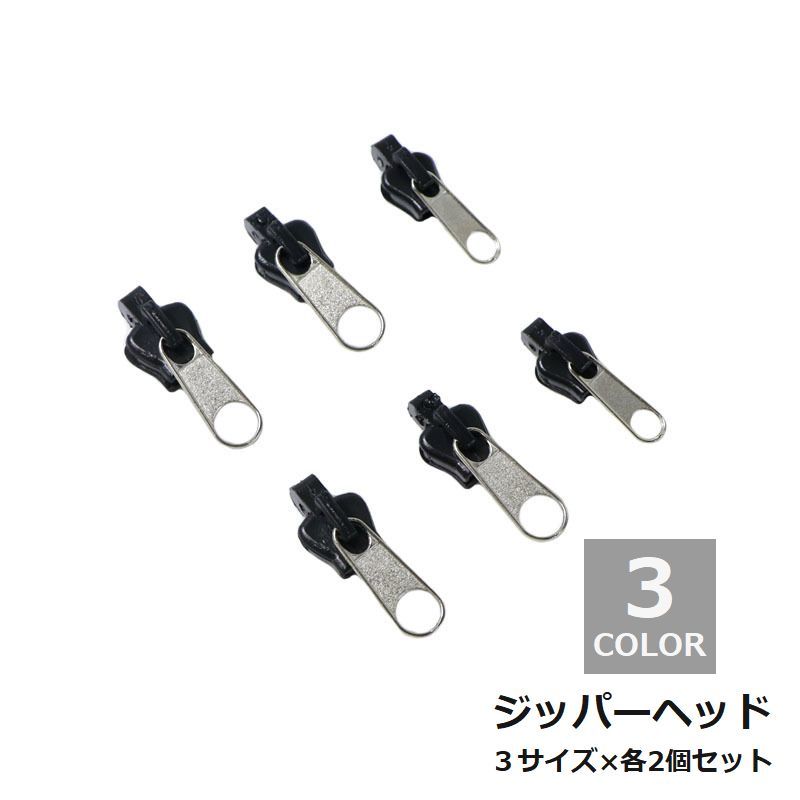 ジッパーヘッド ファスナー ファスナー引き手 3サイズ 各2個入り 交換用 手芸用品 ハンドクラフト ハンドメイド シンプル 便利 黒 ブラウン シル