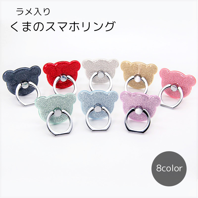 スマホリング スマホアクセサリー ラメ くま ピンク ブラック ブルー シルバーカラー 落下防止 かわいい カラバリ豊富