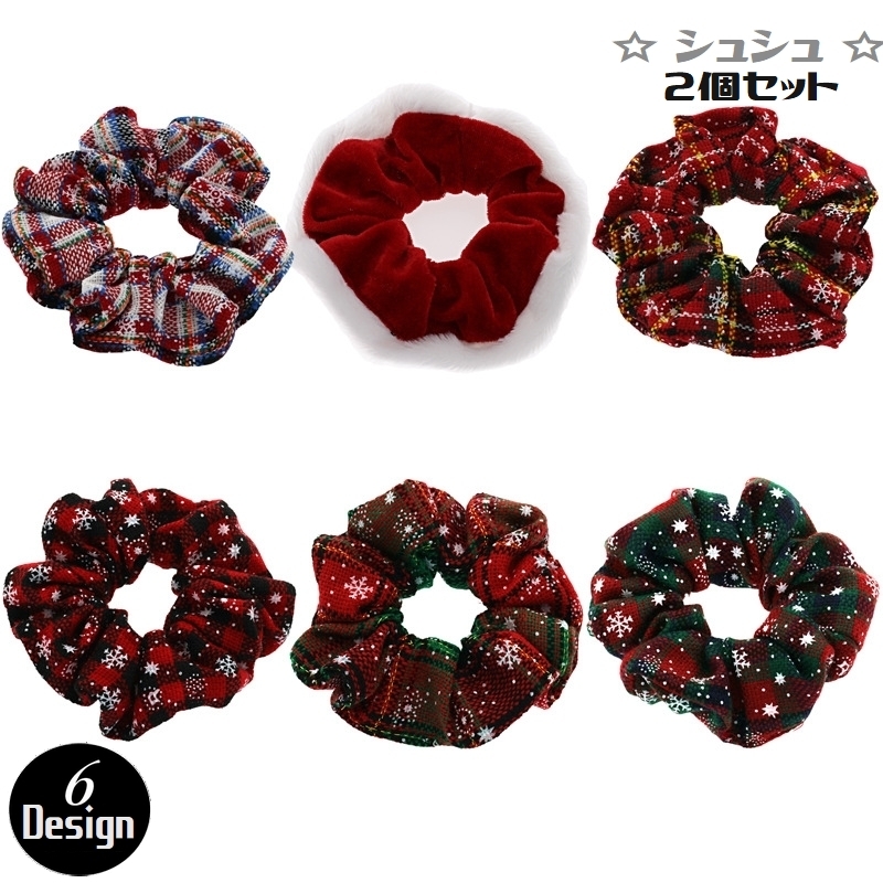 とっても可愛いクリスマスDesignのシュシュ、6種類からお選びいただけ2個セットです。