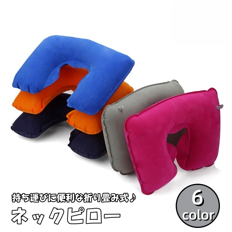 ネックピロー U字型 首枕 エアーピロー エアー枕 エアークッション 日用品雑貨 旅行用品 アウトドア用品 無地 単色 シンプル 携帯式 旅行 空気