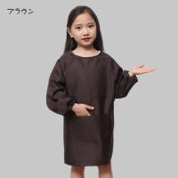 スモック キッズ 子供用 男の子 女の子 袖付き 長袖 エプロン 割烹着 無地 防水 汚れ防止 ポケット付き 料理 お絵かき 砂遊び お手伝い 食事