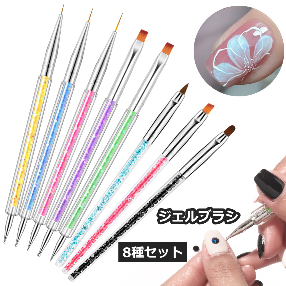 ジェルブラシ 8種セット ネイルブラシ ドットアートペン フレンチ ライナー オーバル フラット 筆 ジェルネイル ネイルアート用品 セルフネイル