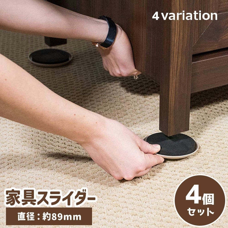 家具スライダー 家具移動パッド 4個セット 約89mm カーペット用 キズ防止 滑りやすい 床の保護 模様替え 大型家具 テーブル ソファ ベッド