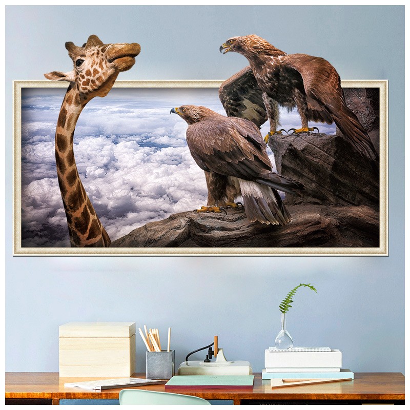 ウォールステッカー ウォールシール 動物 キリン 鷹 鷲 イーグル ホーク 自然 断崖絶壁 だまし絵 トリックアート 3D 立体的 飛び出す 壁シール