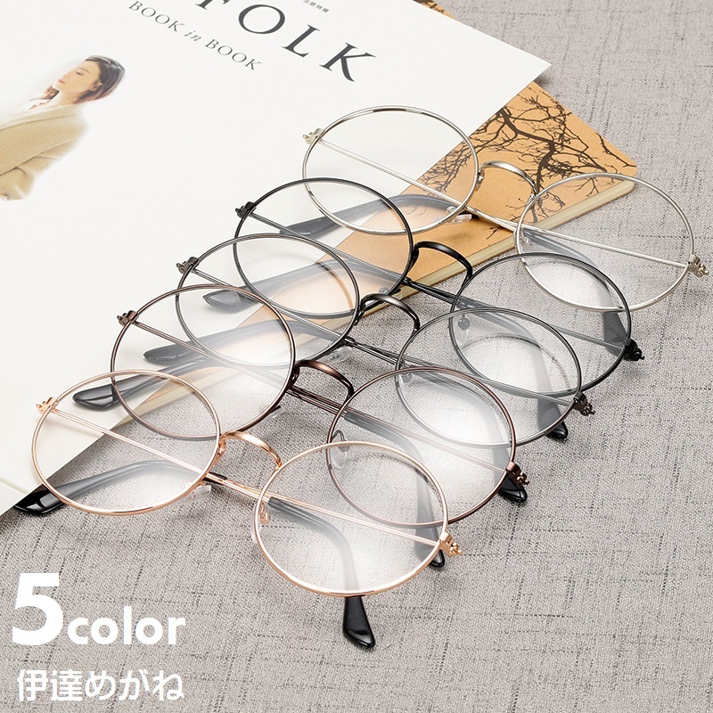 伊達めがね 伊達メガネ ファッションメガネ 男女兼用 レディース メンズ だて眼鏡 度無し 丸型 丸めがね ラウンド 細フレーム メタルフレーム 細リ