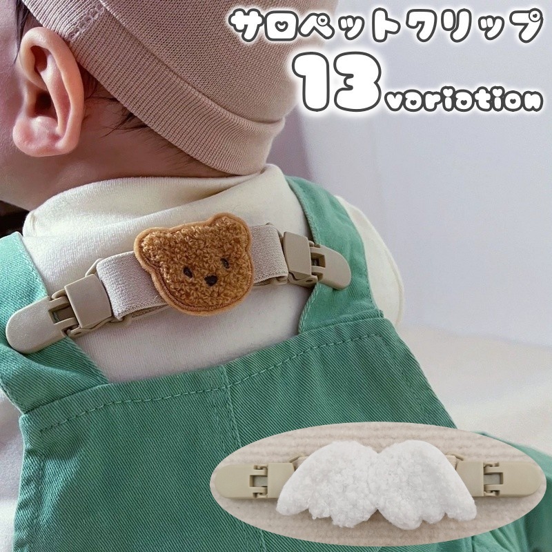 サロペットクリップ キッズ ベビー 子ども用 赤ちゃん用 肩ひも固定 ずれ防止 クマ 熊 天使の羽 ゴム 伸縮性 おしゃれ 定番 かわいい プレゼント