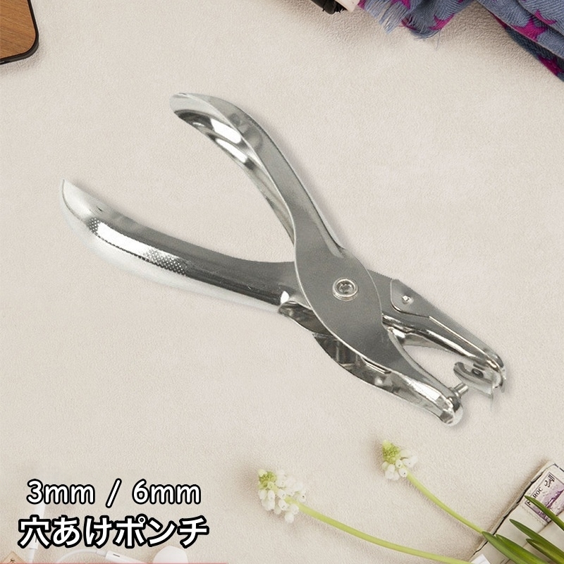 穴あけパンチ 1穴 丸穴 3mm 6mm ハンディ 紙 ルーズリーフ 書類 ファイリング 事務用品 文具 文房具 シンプル