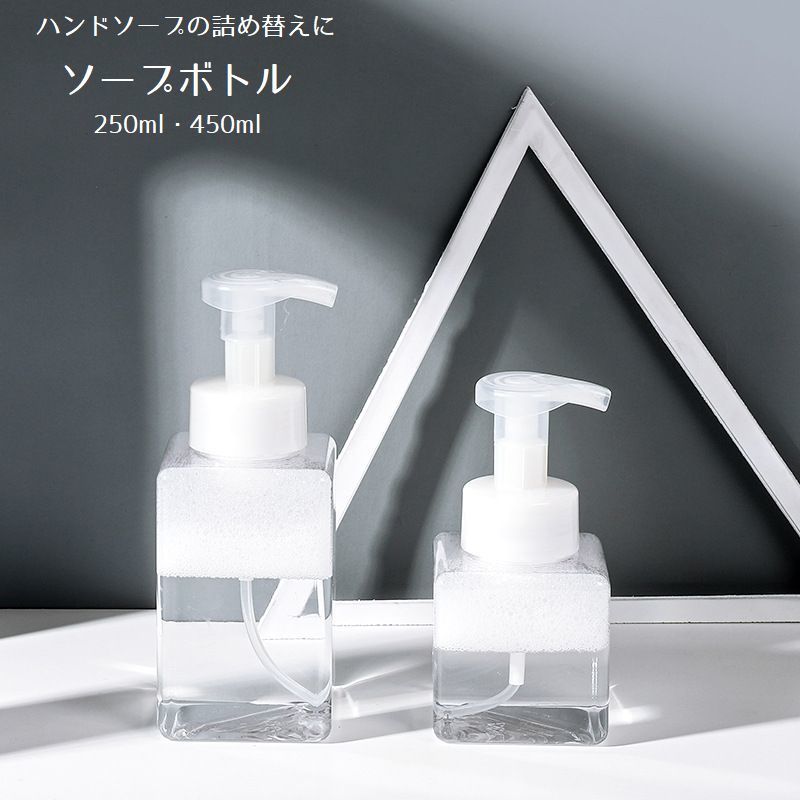 ソープボトル ディスペンサー 詰め替えボトル ハンドソープ 泡立てボトル 容器 透明 ポンプ プッシュ シャンプー ボディーソープ おしゃれ