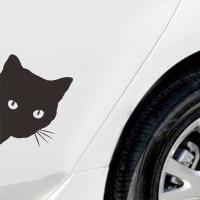猫が覗き込んでいる可愛いデザインのウォールステッカーです。