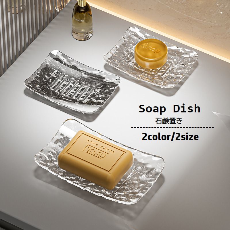 ガラスのようなデザインがおしゃれなソープディッシュです。