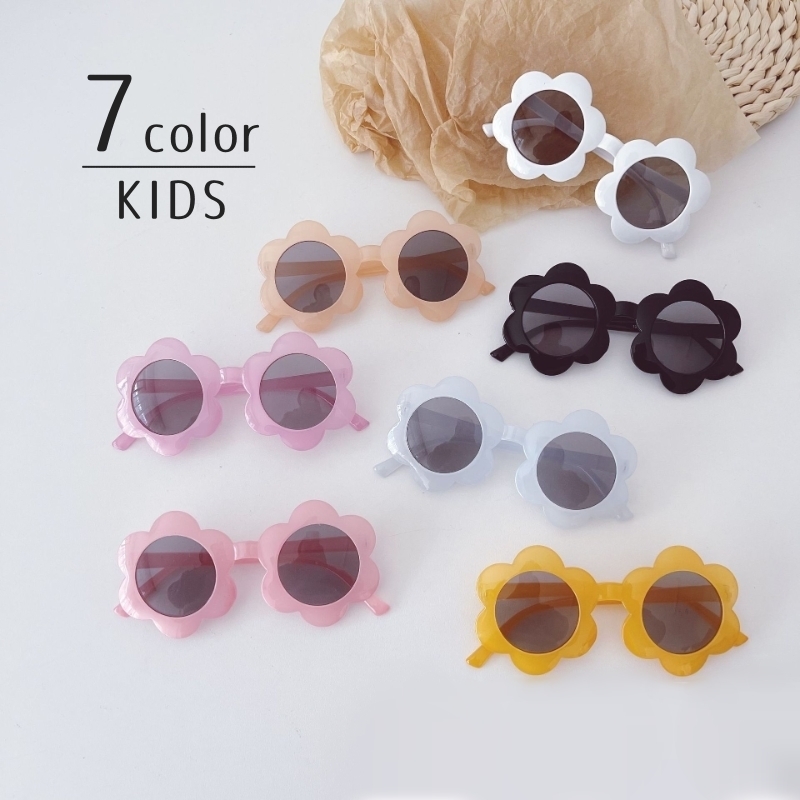 サングラス ラウンド型 アイウェア キッズ 子供用 ユニセックス 男の子 女の子 ファッション小物 花 フラワー カラーレンズ かわいい おしゃれ