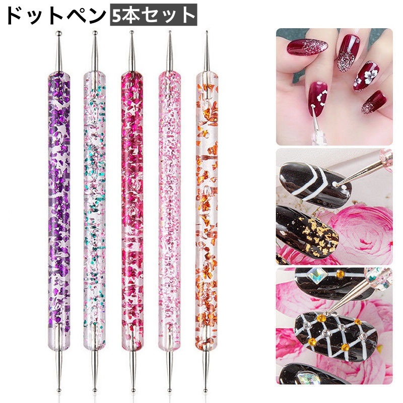 ドットペン 5本セット ネイルアートペン ネイルグッズ かわいい おしゃれ ジェルネイル マニキュア レジンアート 0.8mm 1mm 1.5mm 2