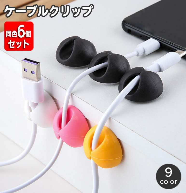 ケーブルクリップ ケーブルホルダー 同色6個セット 充電ケーブル 電源コード USBケーブル コード整理 パソコン 周辺機器 スマートフォン 収納 配