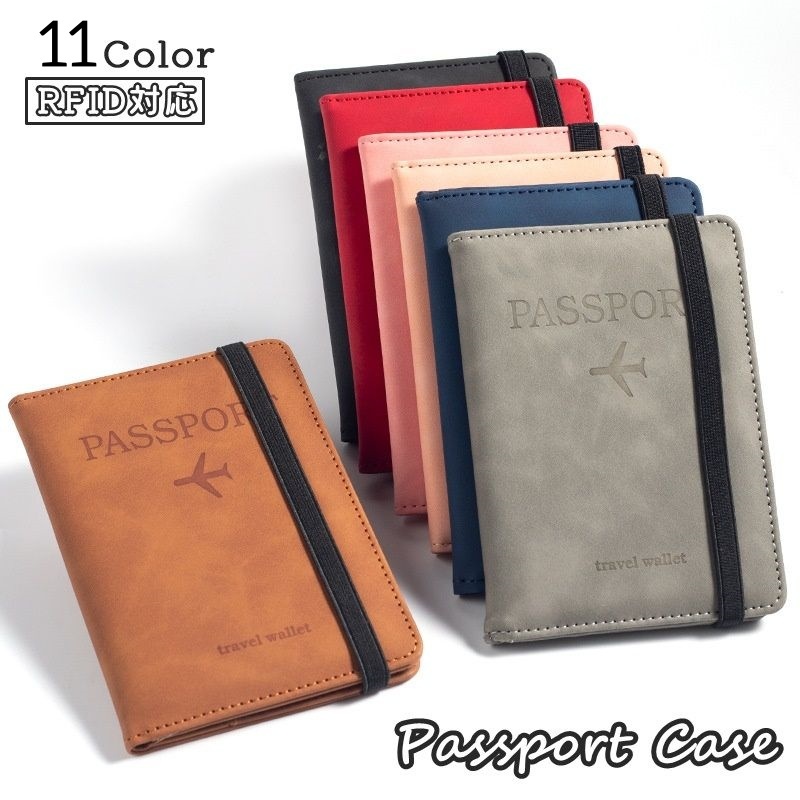 パスポートケース パスポートカバー レディース メンズ 女性 男性 男女兼用 二つ折り レザー調 スリーブ ゴムバンド付き スキミング防止 RFID