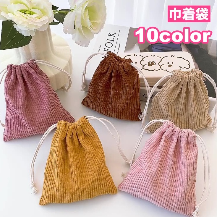 巾着袋 きんちゃく袋 巾着ポーチ 小物入れ コーデュロイ レディース 女性 大人 化粧ポーチ おしゃれ かわいい 可愛い 小物 収納 持ち運び お出か