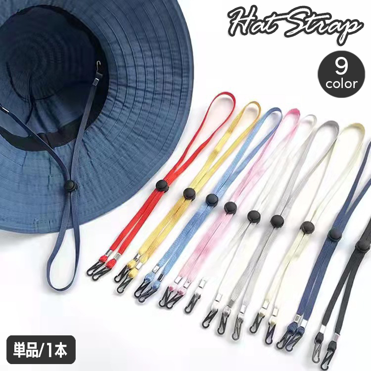 ハットストラップ 単品 1本 帽子用 あごひも 落下防止 長さ調節可能 平紐 脱着式 無地 単色 カラバリ豊富 飛ばない ぶら下げ 便利 シンプル 日