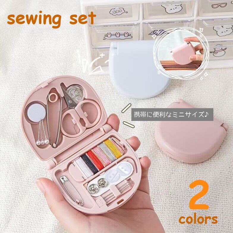 ソーイングセット 裁縫セット ミニサイズ コンパクト 旅行 外出先 持ち運び 携帯用 ポータブル ソーイングボックス 裁縫箱 縫い針 糸 糸通し ハサ