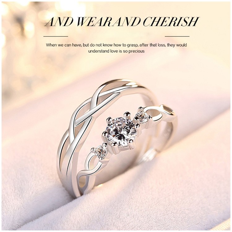 指輪 リング ダブルリング カップルリング 結婚指輪 婚約指輪 二連リング シルバーカラー クリスタル風 ダイヤ風 細身 きれい 美しい 繊細 上品
