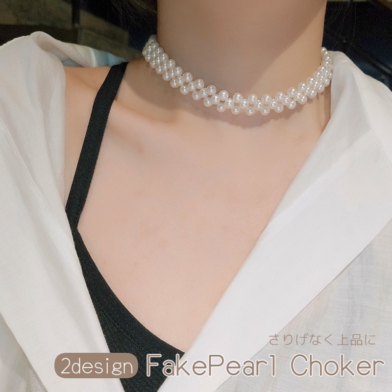 パールチョーカー ネックレス アクセサリー パール ビジュー シンプル レディース ホワイト
