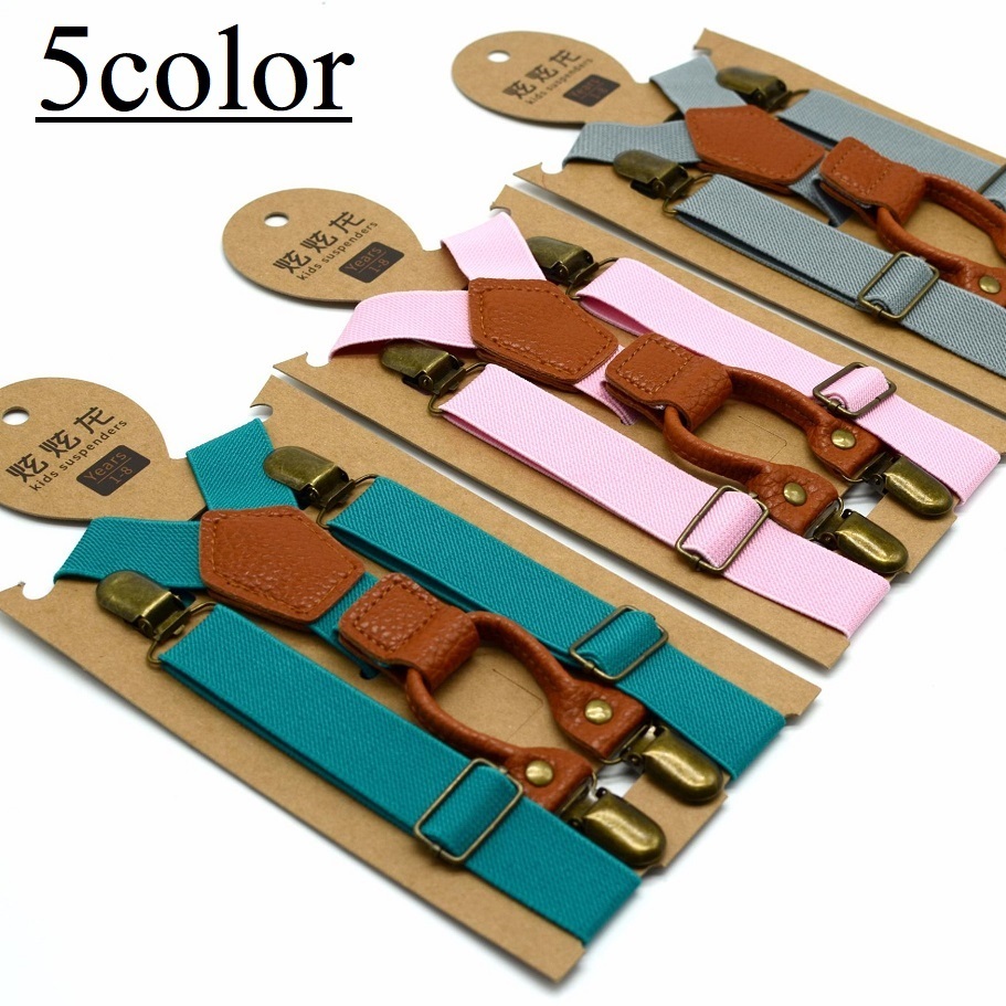 サスペンダー 子供 キッズ 男の子 女の子 ファッション小物 Y字型 吊りバンド 4クリップ ズボン吊り 無地 皮風 カジュアル フォーマル シンプル